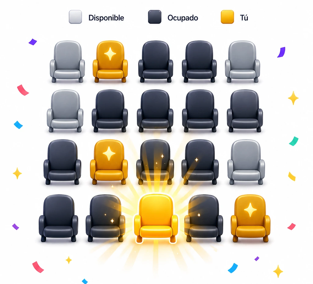 Selecciona tu asiento y ya estás participando.